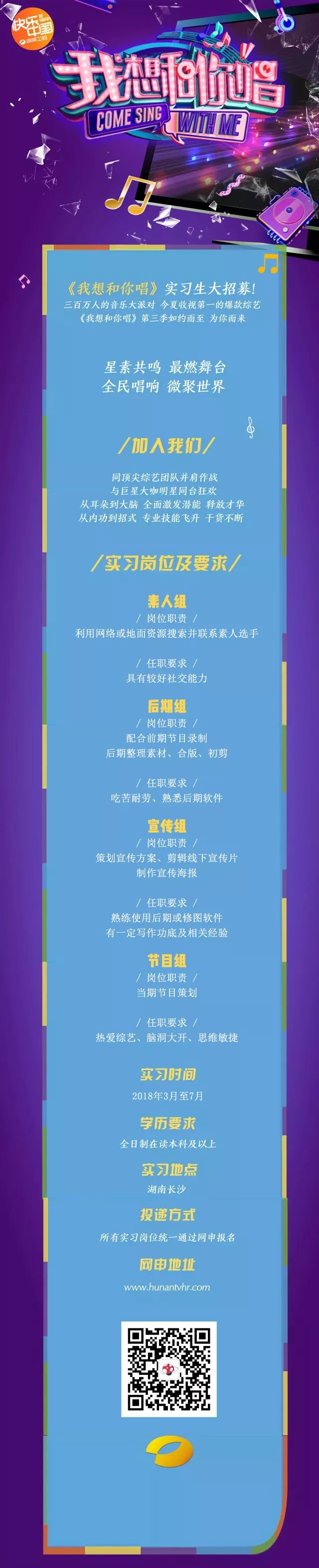 【招聘】《我想和你唱》第三季实习生大招募!