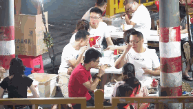 千禧年之后,陈叔的生意进入了红火期。客人络绎不绝,摊子附近摆满了小桌子,有时甚至摆到了对街的空地上。周围街坊敏锐地发现了这个契机,开始在店门口摆些搭配肉肠的凉菜或酒水饮料卖。慢慢地,这些副食店、布料店、修理店就都演变成了小吃店。再后来,花甲、龙虾、烧烤这些“夜宵巨头”纷纷入驻东瓜山。从此,“夜宵”便正式在东瓜山拥有了姓名。据了解,至今东瓜山已有约46家美食店。