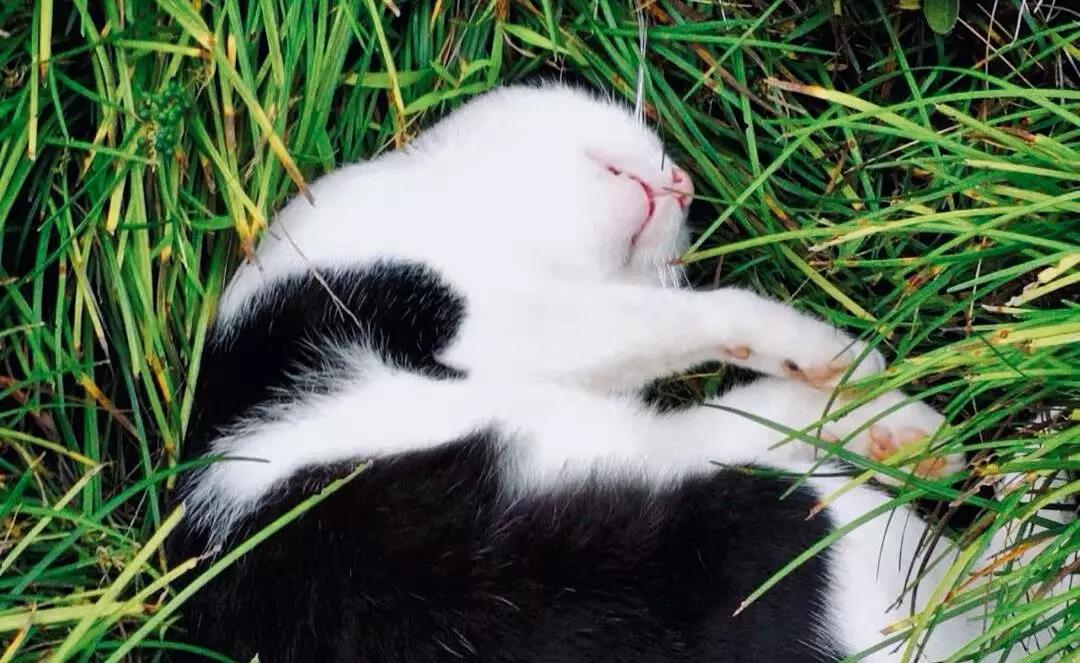 大礼堂附近的草丛里/熟睡的喵