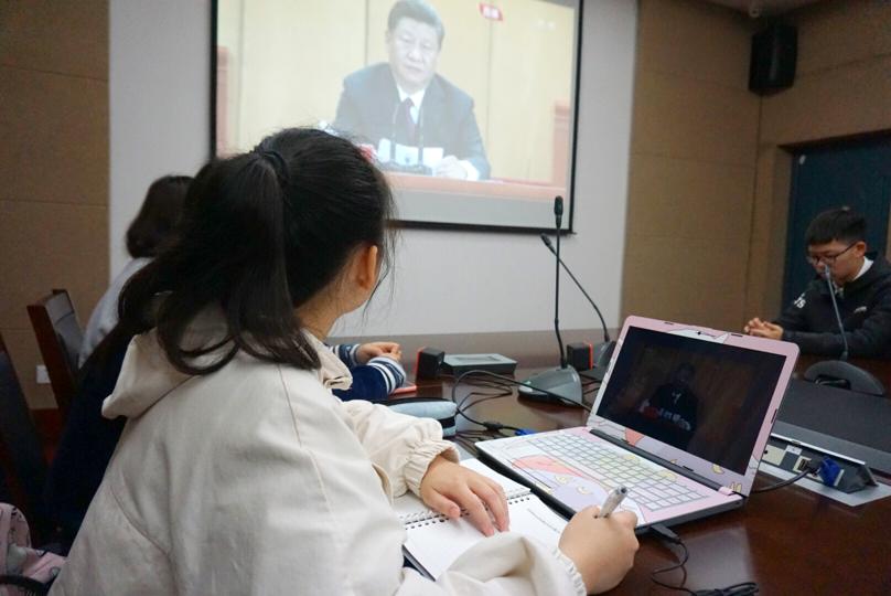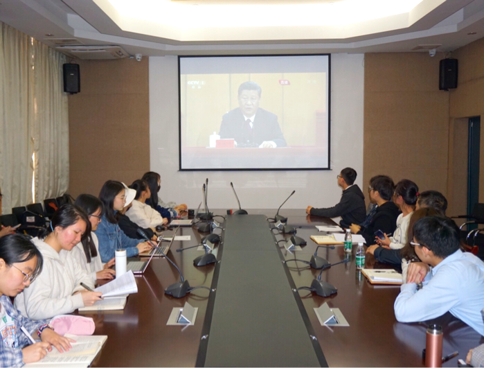 4月30日上午10时30分,纪念五四运动100周年大会在人民大会堂举行。中共中央总书记、国家主席、中央军委主席习近平出席大会并发表重要讲话。为学习、传承和弘扬五四精神,新闻传播与影视艺术学院组织师生代表集中观看本次直播。