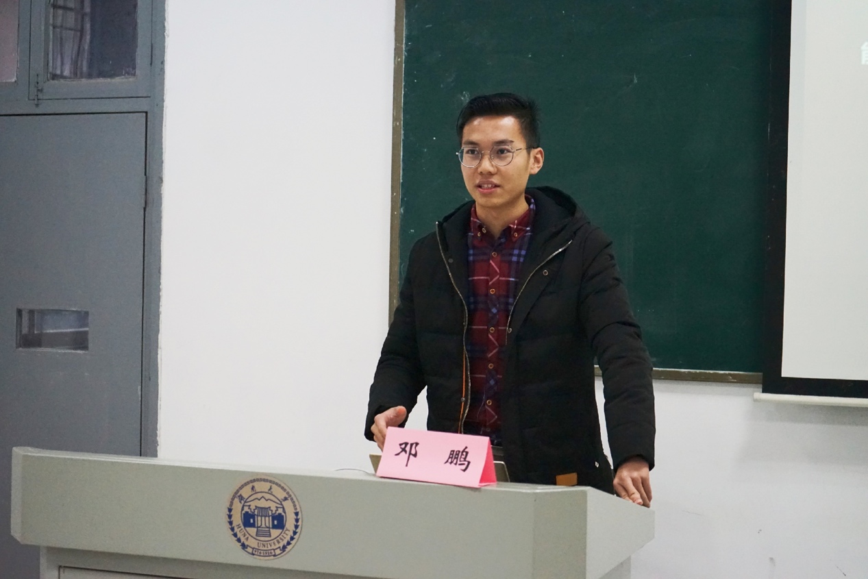 第二位分享人是心理部部长邓鹏,他用详尽的PPT为大家介绍了自己的工作心得,以及对在座干部们的要求与期许。在谈论到自身的工作心得时,邓鹏指出一定要了解工作概况与关键细节、流畅开展工作任务以及要努力锻炼自己的交流协商、情商思维能力;而在讲到对大家的期许时,邓鹏则对大家提出了众多工作细节要求,以及要更好地待人接物,对他人宽心态、多交流、学会谨言慎行等。他在讲话最后总结了自身工作方面的缺点,向在座学生干部推荐了《你自以为的极限,只是别人的起点》这本书,勉励大家共同进步。