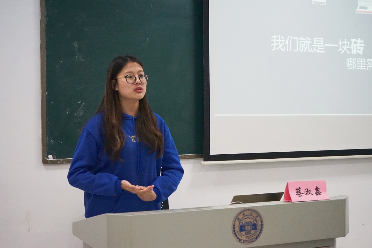 新影院学生会主席蔡淑鑫,首先就如何做好一名班级干部的话题开始了讲话,她鼓励大家主动调动班级积极性,完善如班费收支情况等班级制度。接着,蔡淑鑫与18级干事们分享了众多如何做好学生工作的干货,如要注意礼貌;多听多干活,动脑子办事;对布置的任务有积极的反应和注意调整自己的人际关系等。同时,她引用了自己在大一工作的经历,让在座的学生干部们了解如何处理好自己身兼的多个职位,并提醒同学们不要因为懒散娱乐而舍弃掉自己的工作时间。