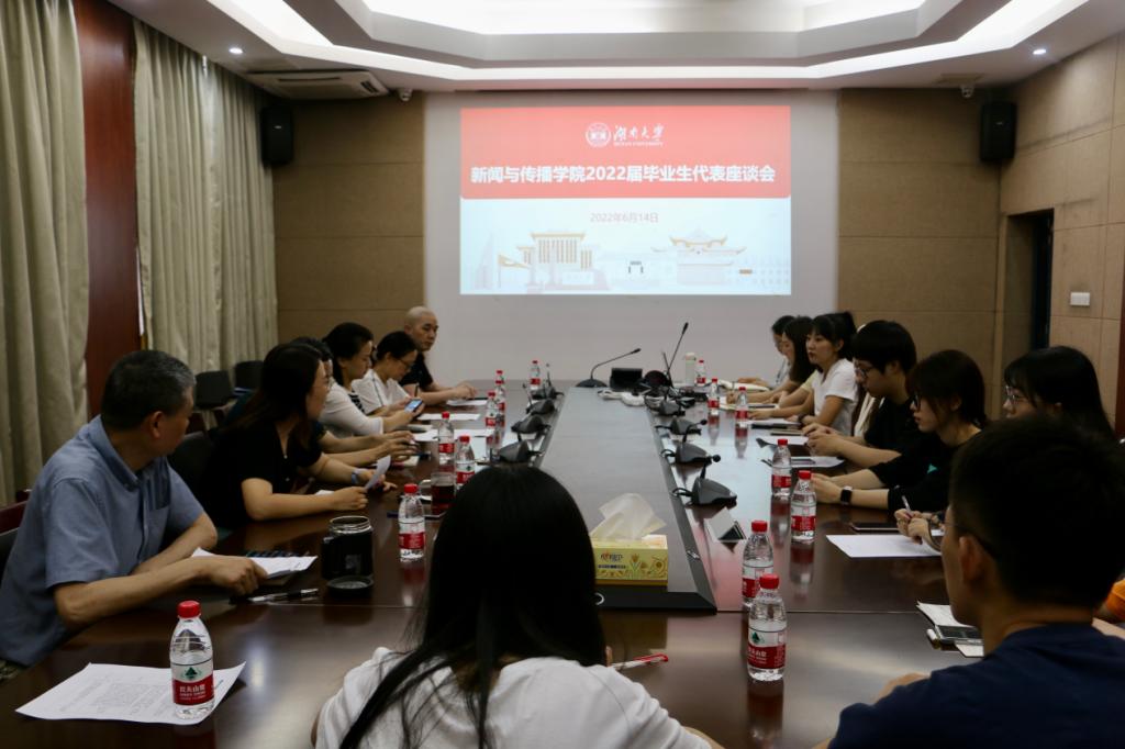 2022届毕业生座谈会在北楼307会议室举行,学院党委书记杨永锋、党委副书记李洪玉、副院长阳美燕、谢莹、院长助理邓向阳、副处级组织员孙建中、毕业班辅导员以及8名本科、研究生毕业生代表参与座谈会。座谈会由院党委副书记李洪玉主持。