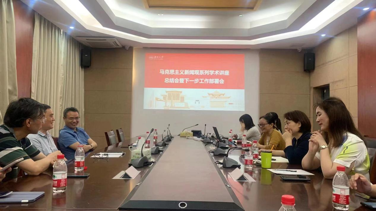 马克思主义新闻观系列学术讲座和征文活动总结暨下一步工作部署会在学院307会议室举行。校党委常委、宣传部部长、学院院长唐珍名,党委书记杨永锋,学院特聘教授、岳麓学者、小黄书