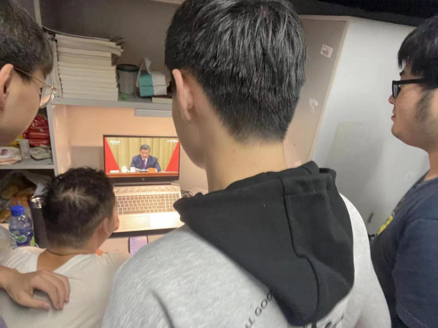 各团支部、全体团学骨干在北楼311集中观看直播,其余同学通过线上班会的形式同步收听收看习近平总书记的重要讲话。