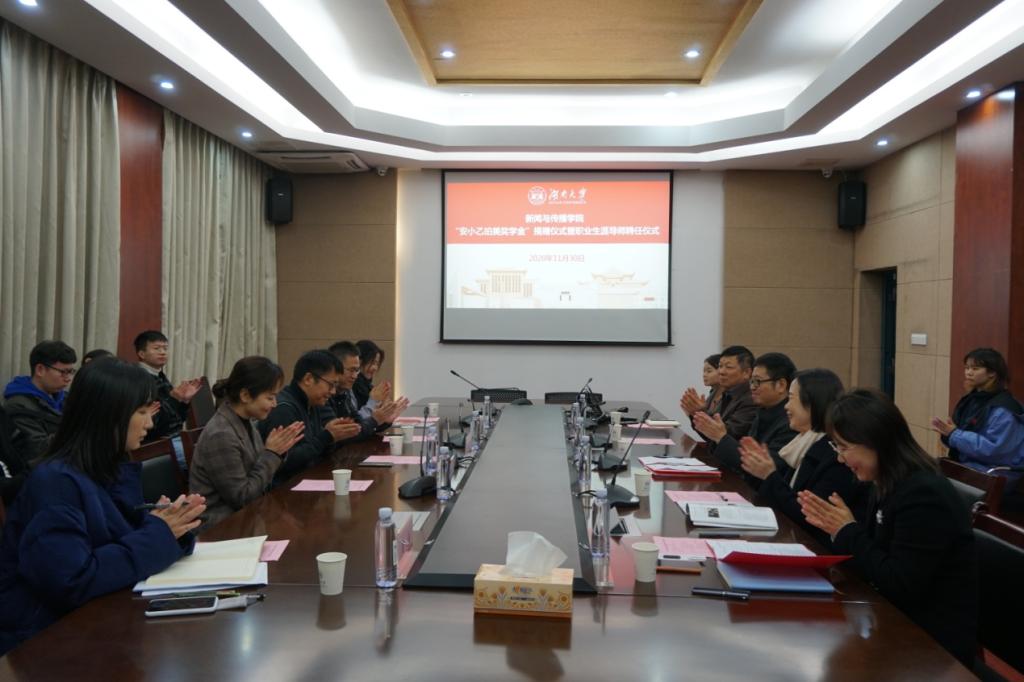 胡建国书记表示,安超校友始终心系母校,捐赠支持学校发展是大情大义的体现,是学校“三全育人”的典范例子。未来,学院将做好奖学金受助者追踪,建立立体管理模式,把校友回报母校的优秀事迹传播下去,讲好湖大故事和新传院故事。