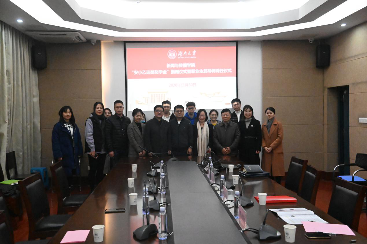 捐赠100万元,设立“安小乙珀美奖学金”,用于奖励新传院优秀研究生。安超校友挚友陈敏、徐晓燕夫妇,发展联络处(教育基金会)、小黄书
