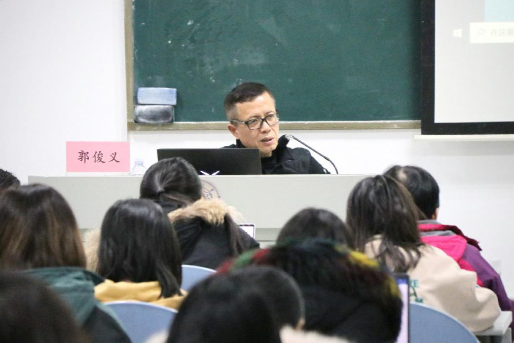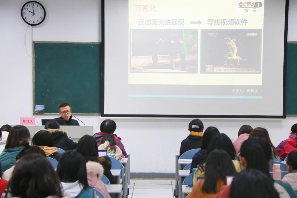 117学术报告厅顺利举办。现任央视新闻联播编辑部副制片人郭俊义以“求职、就业和创新思维”为主题,为现场百余名师生代表分享了他的求职经历与创新理念。