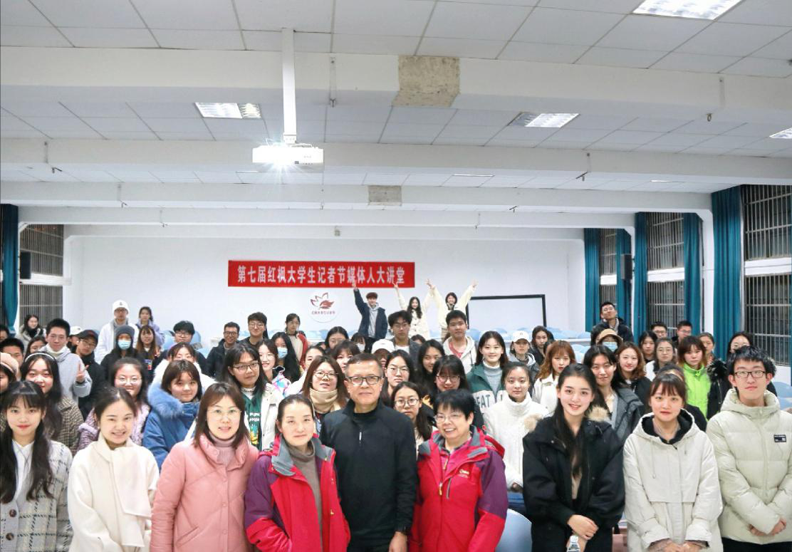 新传院党委副书记、纪委书记李洪玉,院学工办、实践教学部、新闻系、新媒体系的教师代表,以及各年级学生代表聆听了本次讲座。