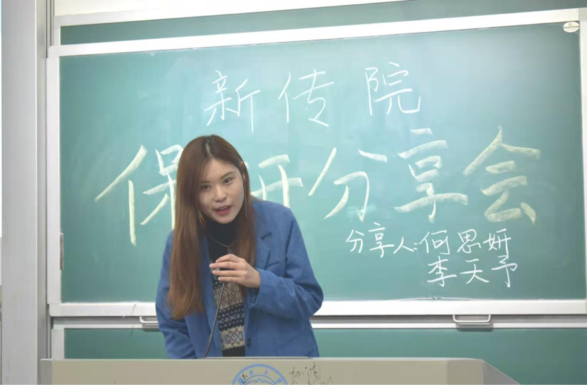 新闻广告专场保研分享会在中楼306顺利举行。2017级成功保研学生何思妍、李天予围绕保研的各项内容,全面地分享了她们的宝贵经验。会议由新传院学习部干事夏银彩主持,新传院20级、19级、18级部分学生参加。