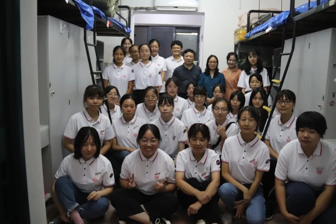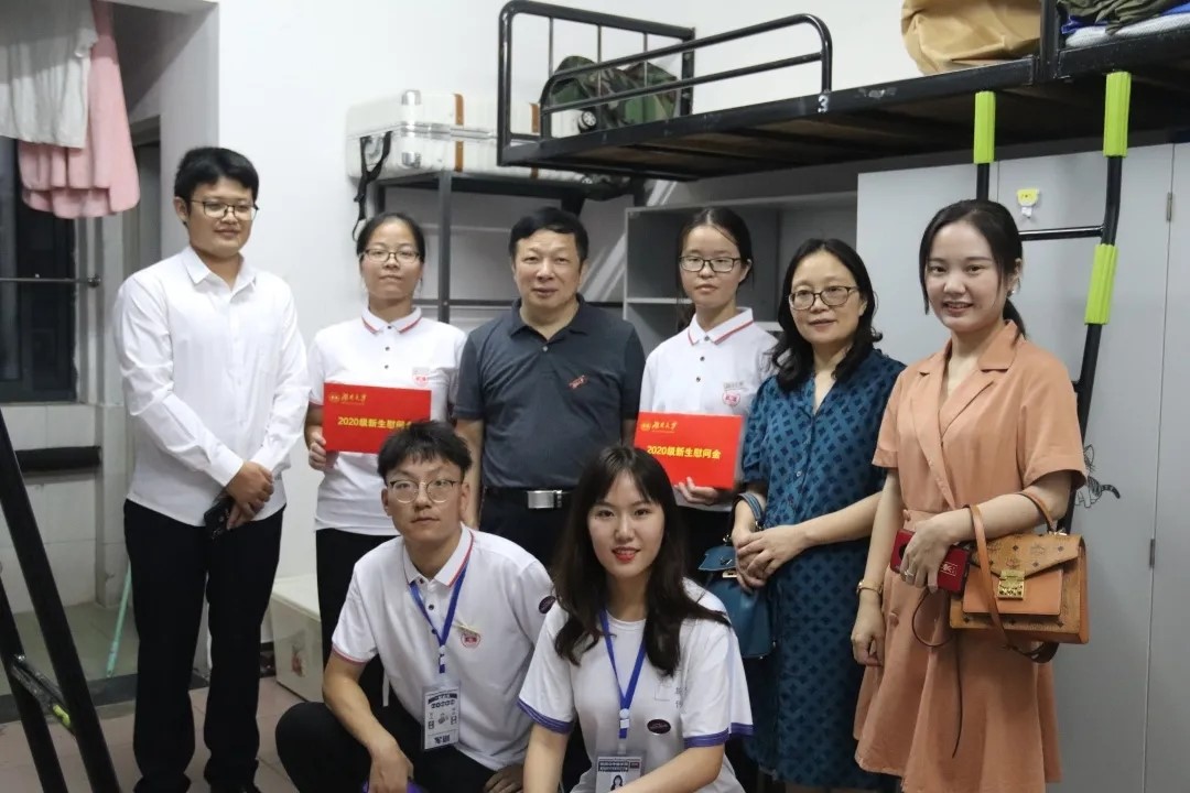 党委书记胡建国,副院长阳美燕,以及辅导员杨湘雨、黄坤林一同前往新生寝室,看望全体新生。