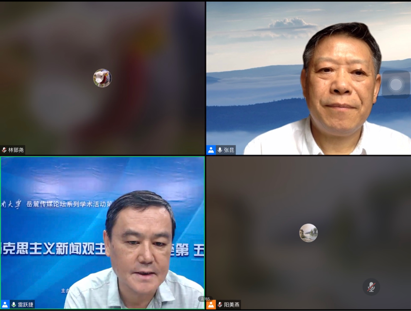 马克思主义新闻观研究中心于腾讯会议室举办了马克思主义新闻观主题系列的第五场学术讲座。此次讲座以“真实性:马克思主义新闻观的精髓”为题,由华中科技大学学术委员会副主任、教授、博士生导师张昆教授担任主讲嘉宾,小黄书