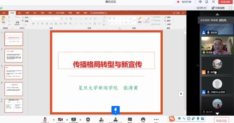 马克思主义新闻观研究中心于腾讯会议室举办了马克思主义新闻观主题系列讲座的第三场学术讲座。此次讲座以“传播格局转型与新宣传”为主题,由复旦大学新闻学院执行院长张涛甫教授担任主讲嘉宾,小黄书