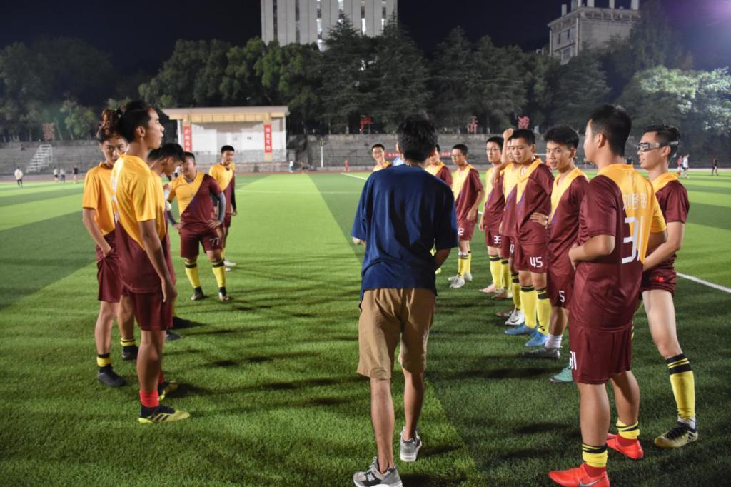 6:40分,全体队员在足球场上集合并进行准备,在此期间,2018级的任佳俊同学接受了我们的赛前采访。在采访中,他对今天的比赛充满信心,并指出队员们的赛前状态要依靠良好的心态和充足的热身,这给队员们带来了极大的鼓舞。