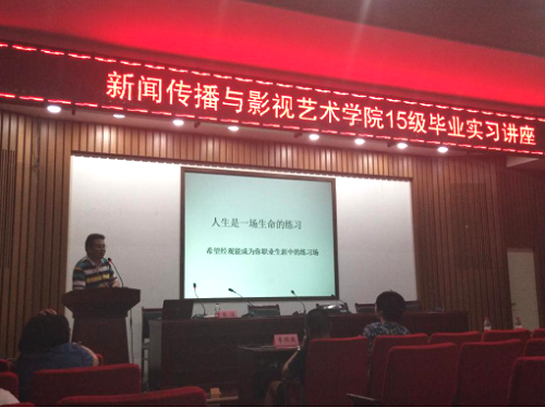 6月29日晚19:00新影院2015级毕业实习系列讲座二在北楼217召开。在谢伦浩老师的主持下,来自《经济观察报》的首席记者李微敖和人力资源部主任兼办公室主任张洁为同学们进行了经验分享讲座。