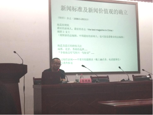 李微敖老师用幽默风趣的语言和一个个生动真实的例子为大家讲述了自己的从业经历,指明了一个合格的新闻从业者应该具备的价值观和新闻标准,也给大家分析了记者这个行业的优缺点,并鼓励大家不要怕前路艰险,要积极大胆投身新闻事业。