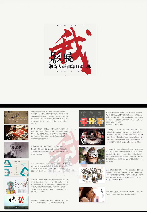 2015级广播电视编导专业课程作品展映在潇湘影城天马影院6号厅举行。学院胡建国书记、程华副书记,广电系系主任周清平博士和专业教师万丽老师、15编导班主任刘琛老师到场观看了这次影展。学院还邀请了湖南电视台电影频道副总监、作家、编剧杨蔚然先生和著名策划宾颖超女士莅临指导,专家们对同学们的作品给出了较高的评价,也提出了一些创作的建议和更高的期许。