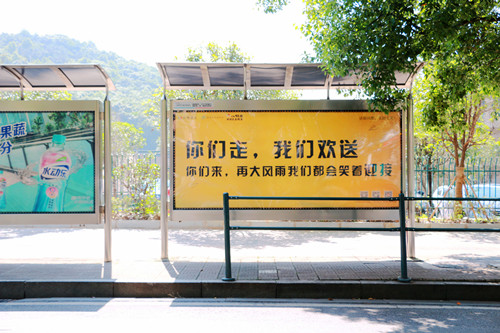 小黄书 新闻传播与影视艺术学院党委副书记兼副院长,敢为先文创平台副主任程华说,“一次偶然的机会,一则微信吸引了我得注意。我觉得这群孩子的想法很好啊,能够让我们等车的时候,看到这些温馨的话语,分享美好的情感。我们老师和热心企业一道,推动了这个想法变成现实,展示大学生创新创业的睿智和勇气。”