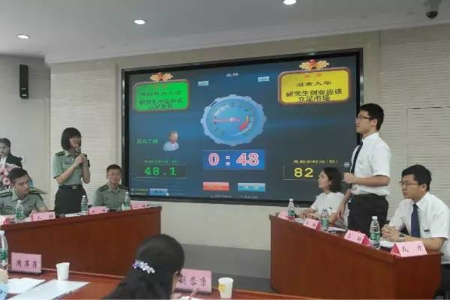 代表队探讨了“研究生创业应立足学科还是立足市场”。国防科技大学为正方,小黄书