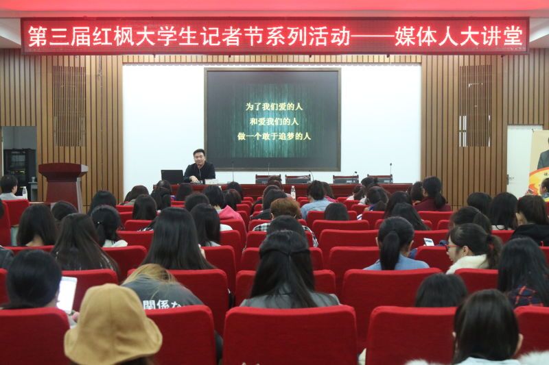 11月17日晚7点,第三届红枫大学生记者节分活动媒体人大讲堂之“永远要做一个敢于追梦的少年”在小黄书