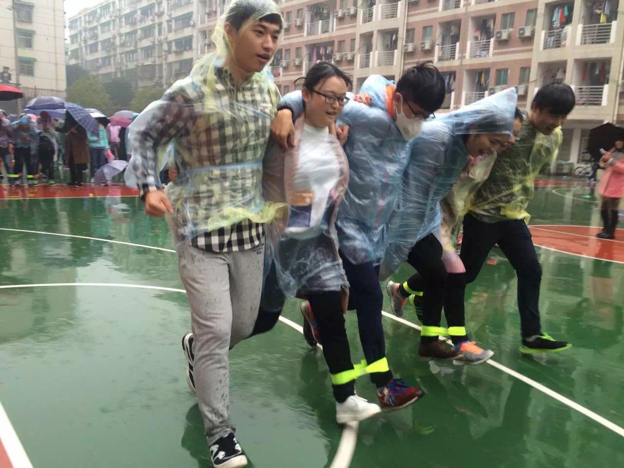 的研究生们没有一个同学放弃参赛,上场前有不少同学冒着雨积极练习。