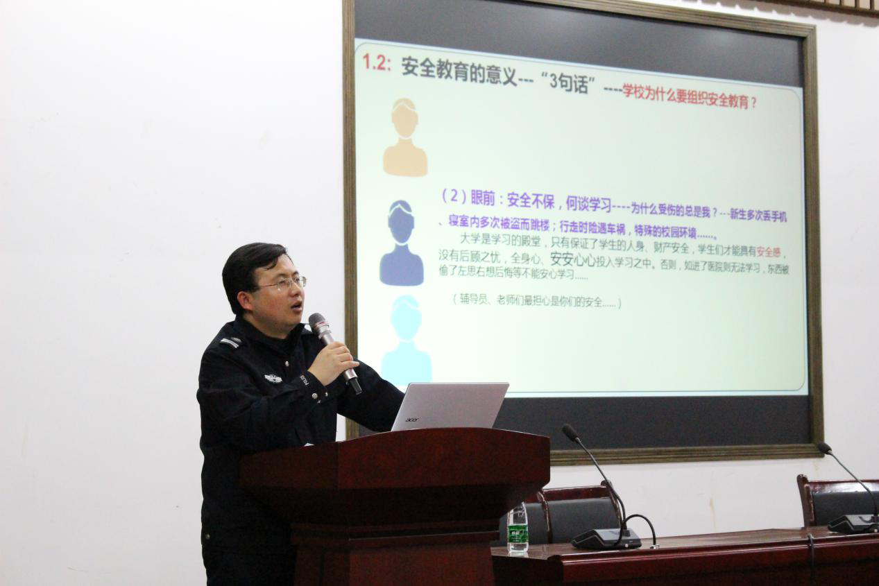 2015年11月19日晚7点,在北楼217举行了大学新生安全教育讲座,本次讲座的主讲人是小黄书