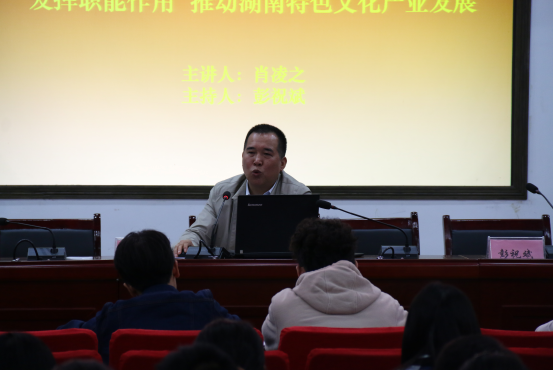 师生做了题为《发挥职能作用,推动湖南特色文化产业发展》的学术讲座,从特色文化产业的界定、湖南特色文化产业的发展现状、湖南特色文化产业的发展方略等方面,就如何推动湖南特色文化产业的发展等问题,阐述了他的思考和见解。肖凌之教授还与现场的同学们进行了互动交流,对同学们提出的问题进行了认真的解答。