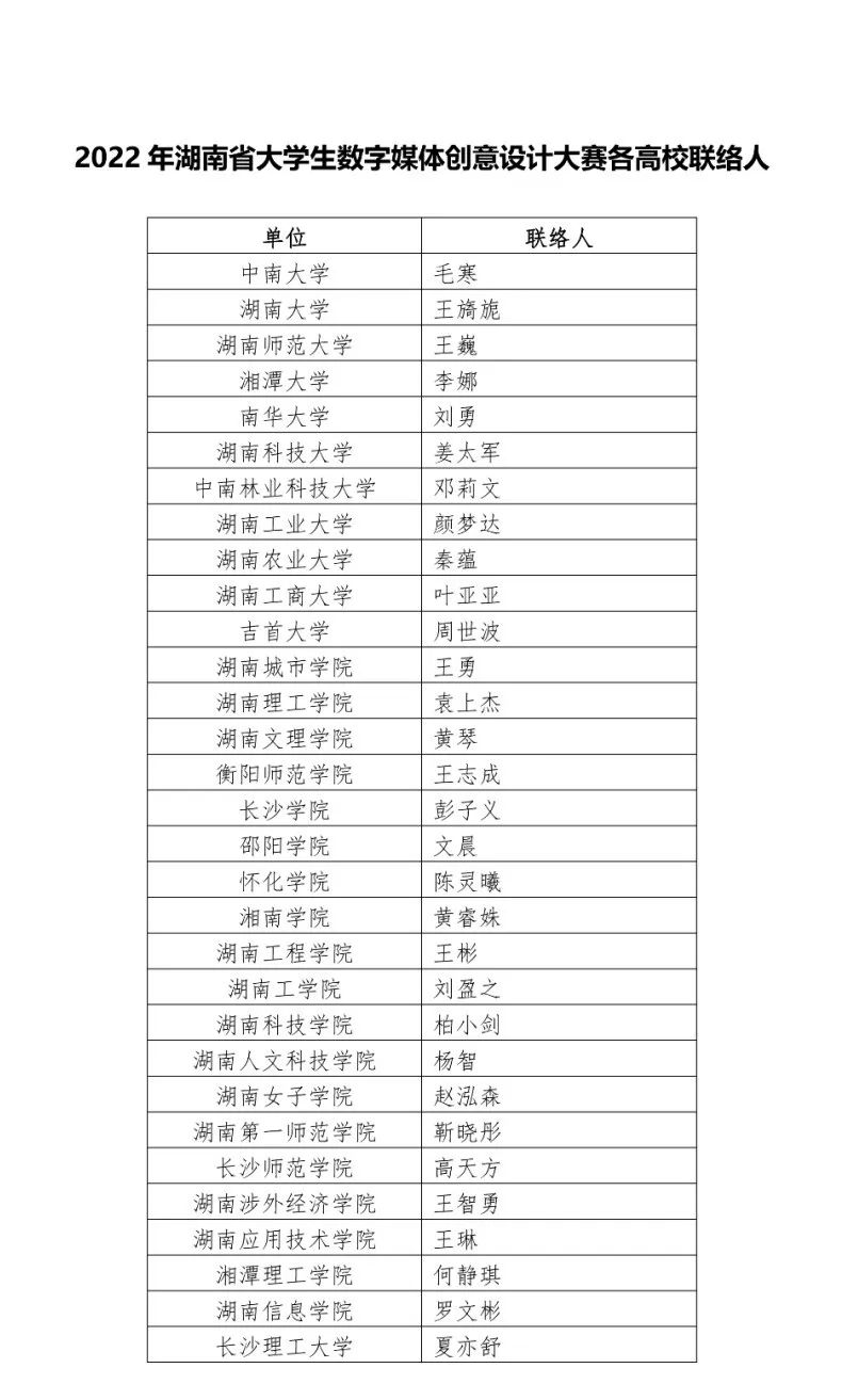 为促进湖南省各本科高校设计学、新闻传播学、计算机科学与技术等类交叉学科之间的学习交流,提高专业人才培养水平,进一步引领和深化高校相关学科专业综合改革的能力,根据省教育厅《关于组织举办 2022 年全省普通高校大学生学科竞赛的通知》(湘教通[2022]84号)要求,决定举办 2022年湖南省大学生数字媒体创意设计大赛。现将赛事有关事项通知如下: